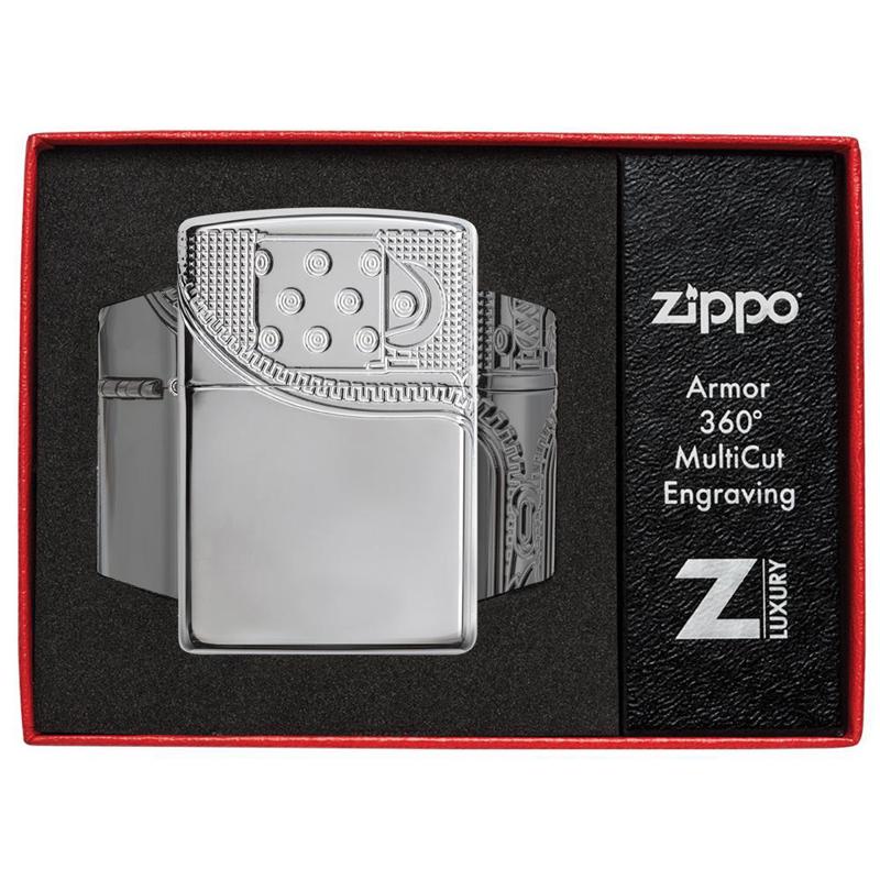 Ветроустойчивая модель Armor™ High Polish Chrome с многогранной опоясывающей гравировкой, которая охватывает все поверхности зажигалки, начиная с крышки и далее вниз по боковой грани. В комплект входит подарочная коробка. Для оптимальной работы рекомендуется заправлять оригинальным топливом Zippo.