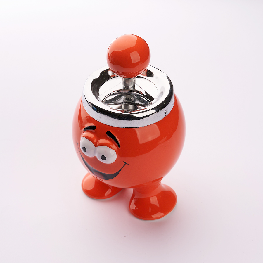 Устройство данной модели предполагает максимальный комфорт и чистоту вокруг. Пепел стряхиваете в углубление со встроенным диском. После того, как вы нажмете сверху на ручку, диск совершает вращение и пепел опускается вниз и остается внутри в закрытом контейнере. Аксессуар изготовлен из металла, хорошо моется, не впитывает запахов.