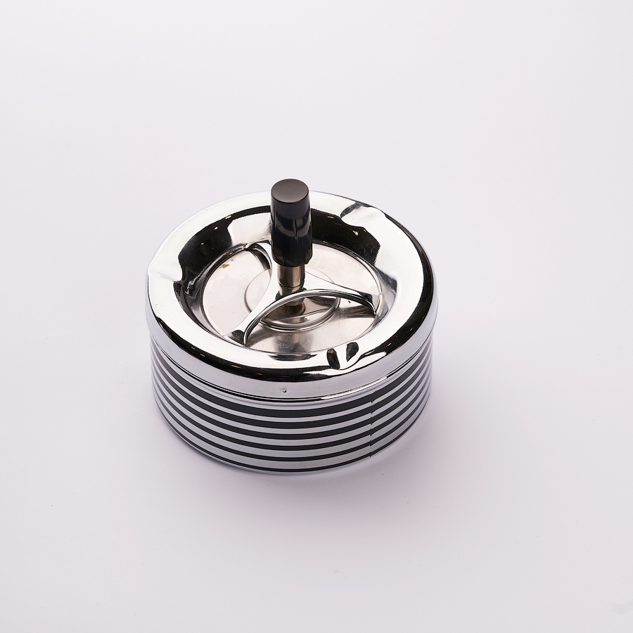 Устройство данной модели предполагает максимальный комфорт и чистоту вокруг. Пепел стряхиваете в углубление со встроенным диском. После того, как вы нажмете сверху на ручку, диск совершает вращение и пепел опускается вниз и остается внутри в закрытом контейнере. Аксессуар изготовлен из металла, хорошо моется, не впитывает запахов.