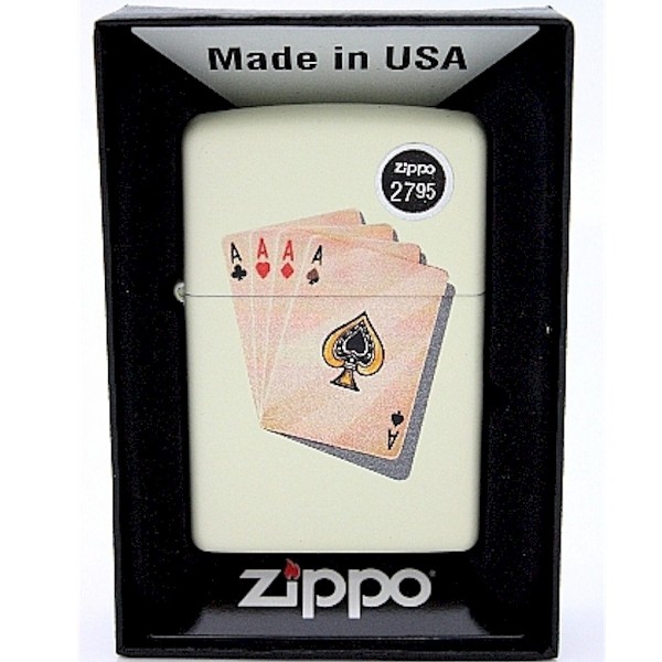 100% Оригинал США. Бензиновая зажигалка Zippo 24795 FOUR OF A KIND (Каре тузов). Классическая зажигалка Zippo с изображением черезвычайно счастливой покерной комбинации — каре тузов. Зажигалка продается не заправленной. Также предлагаем купить оптом и в розницу.