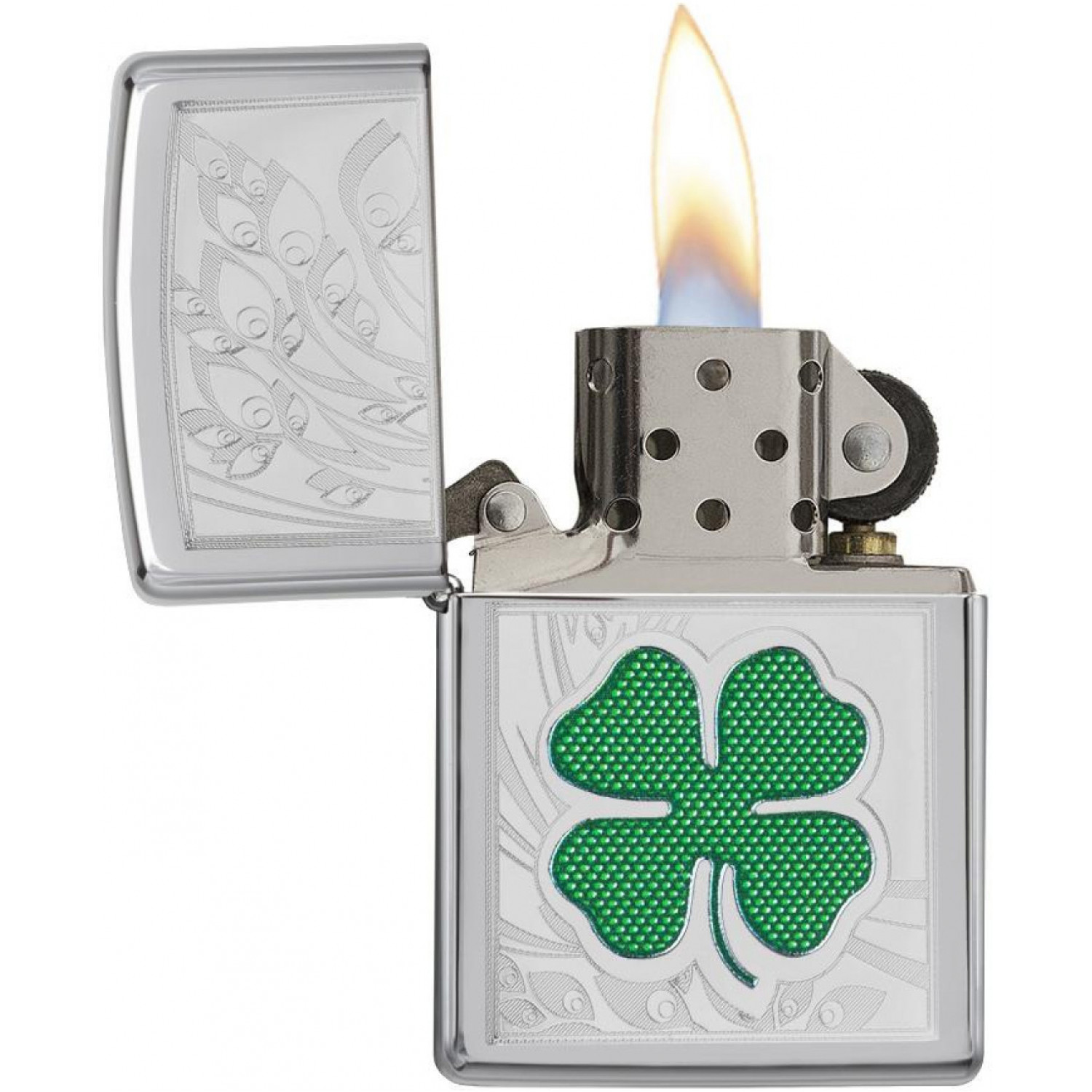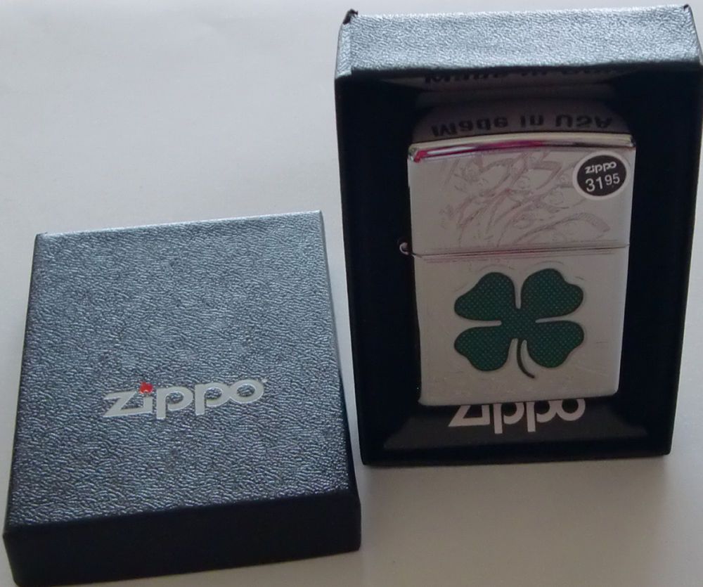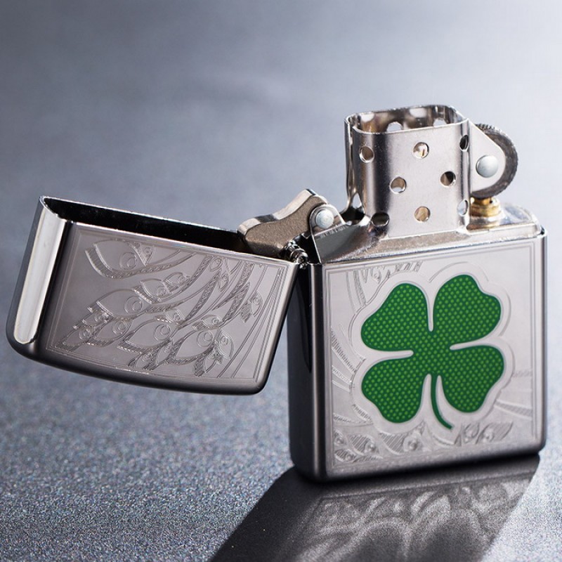 Бензиновая Зажигалка Zippo Four Leaf Clover Luck , в целях безопасности, поступает в продажу не заправленной, поэтому топливо в удобной для вас расфасовке покупается отдельно. Рекомендовано использование только натурального бензина zippo.
