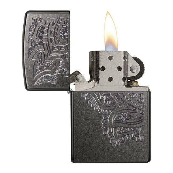 Замысловатая гравировка Пейсли на этой темно-серой зажигалке делает ее вечной.