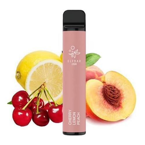 Elf Bar 1500 Cherry Lemon Peach – gustul cireșelor parfumate cu piersici dulci și acrișoare plăcută de lămâie.