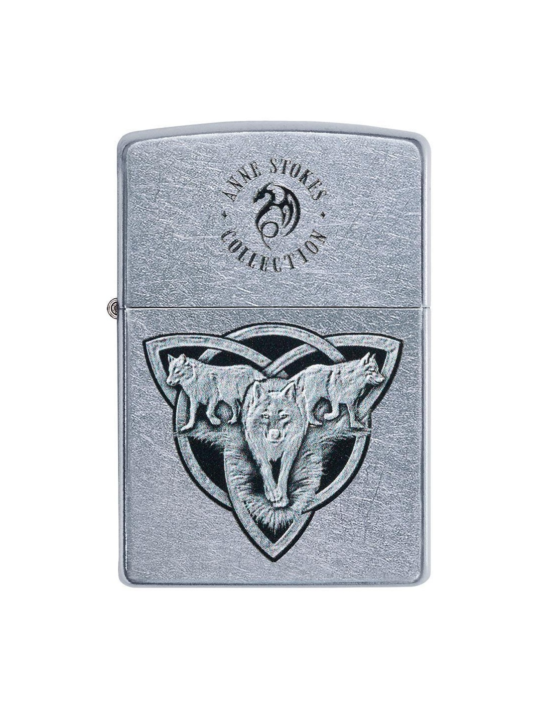 Bricheta de pânză Zippo 207 Anne Stokes Wolf Trio este o brichetă clasică Zippo pe argint, cu un pachet de trei lupi cu un nod triplu în fundal, cu logo-ul Annei Stokes pe capac. Corpul de alamă al brichetei are un finisaj mat care este rezistent la abraziune.