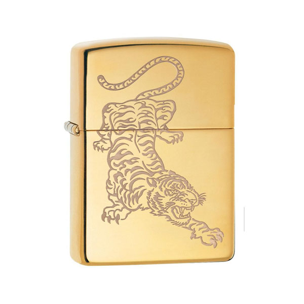 Bricheta Zippo Tattoo Tiger Design 29884 este o brichetă de alamă cu o suprafață de alamă înaltă poloneză, în culoare aurie. Pe suprafața frontală a brichetei se află un desen al unui tigru. Model clasic rezistent la vânt
